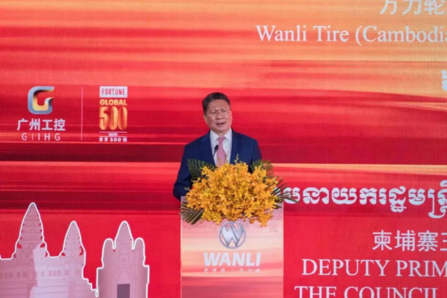 1月12日,广州工控集团旗下万力轮胎柬埔寨基地投产仪式,在柴桢省新巴域特区举行。柬埔寨副首相兼发展理事会第一副主席孙占托,柬埔寨发展理事会副部长谢无敌,柴桢省副省长萨·索达尼,参加活动。
